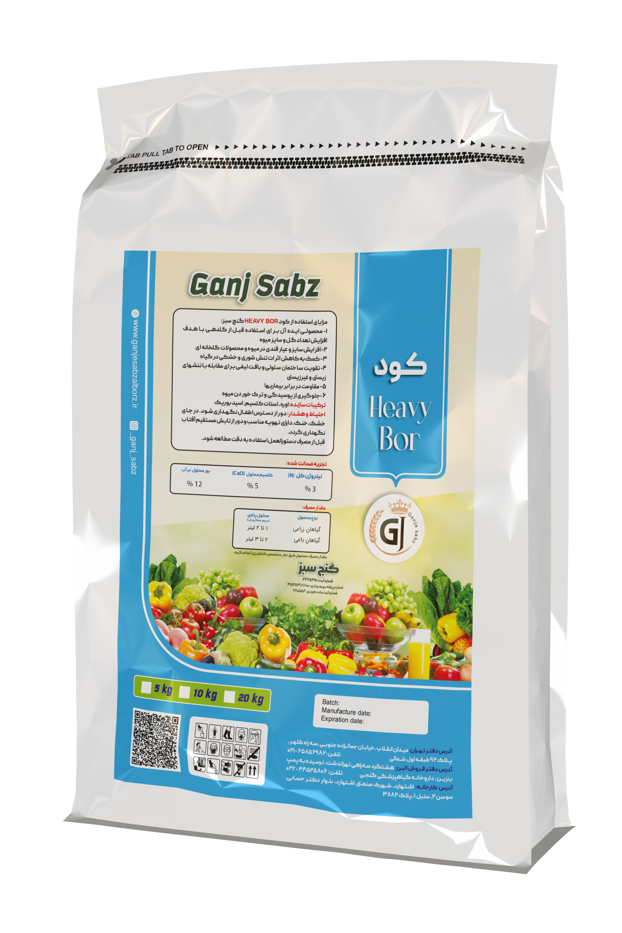کود Heavy Bor گنج سبز یک کود تخصصی حاوی عنصر بر (B) به همراه نیتروژن و کلسیم است که برای پیشگیری و رفع کمبود بر در گیاهان زراعی و باغی طراحی شده است...