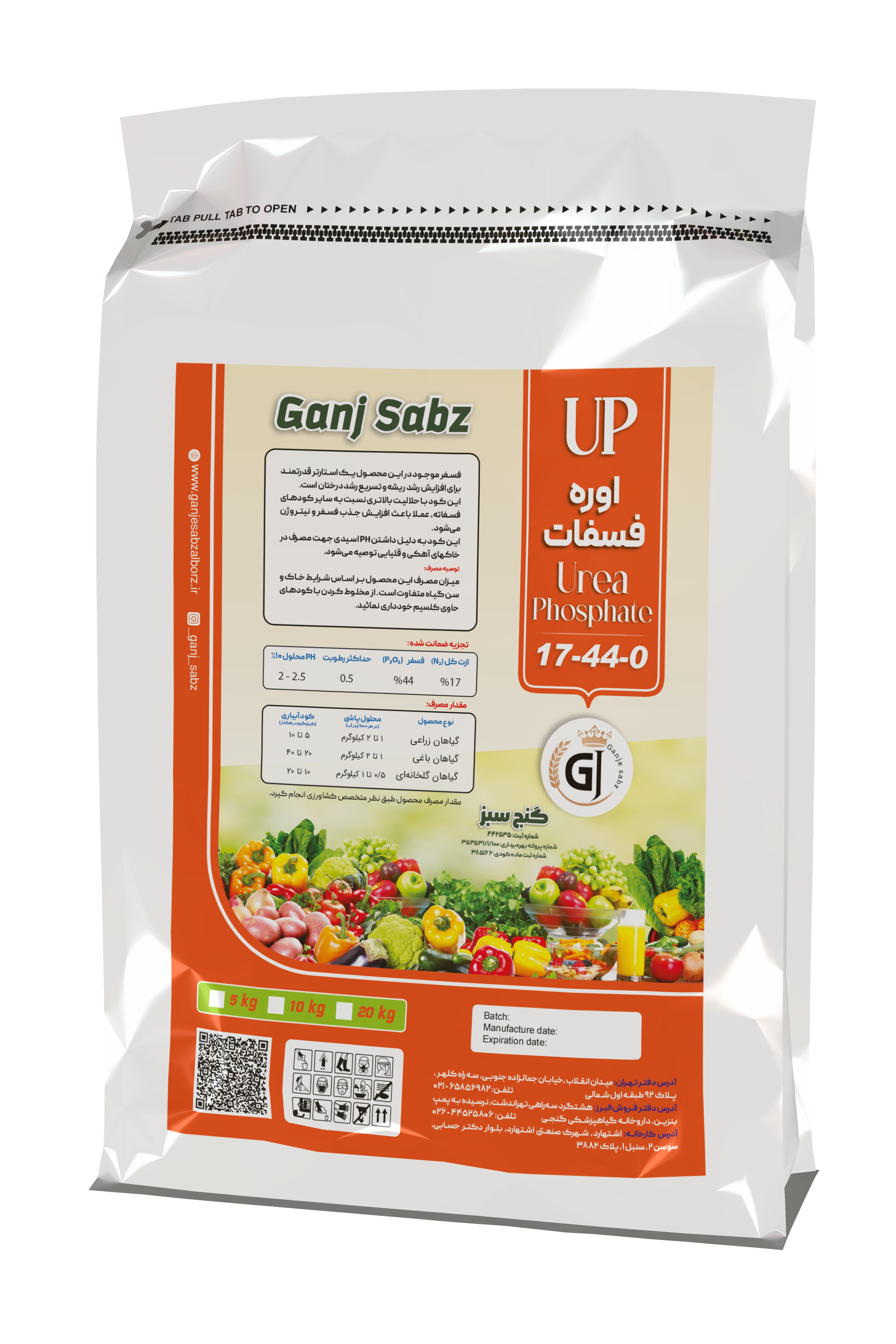 کود اوره فسفات گنج سبز ترکیبی غنی از عناصر مهم نیتروژن به فرم اوره و فسفر است که نقش بسیار مهمی در تغذیه گیاهی دارد....