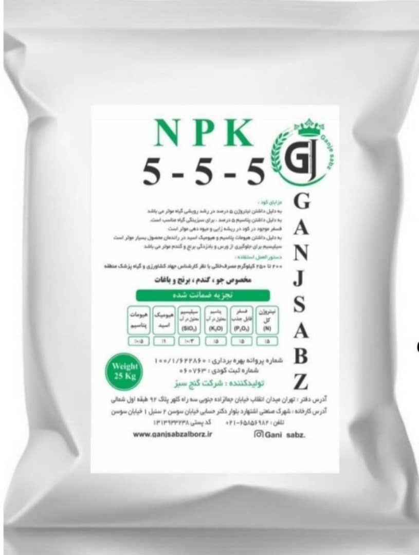 کود کامل NPK 5-5-5 دارای ۵ درصد عنصر نیتروژن (ازت) ، ۵ درصد فسفر و ۵ درصد پتاسیم میباشد ...